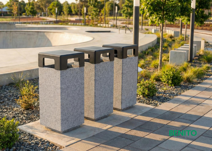 BENITO tänavamööbel ja inventar (pargipingid, prügikastid, jalgrattahoidjad) on projekteeritud intensiivseks kasutamiseks avalikus ruumis. Läbimõeldud konstruktsioon ja kvaliteetsed materjalid tagavad löögikindluse, vähendades haldus- ja hoolduskulusid pikaajaliselt.